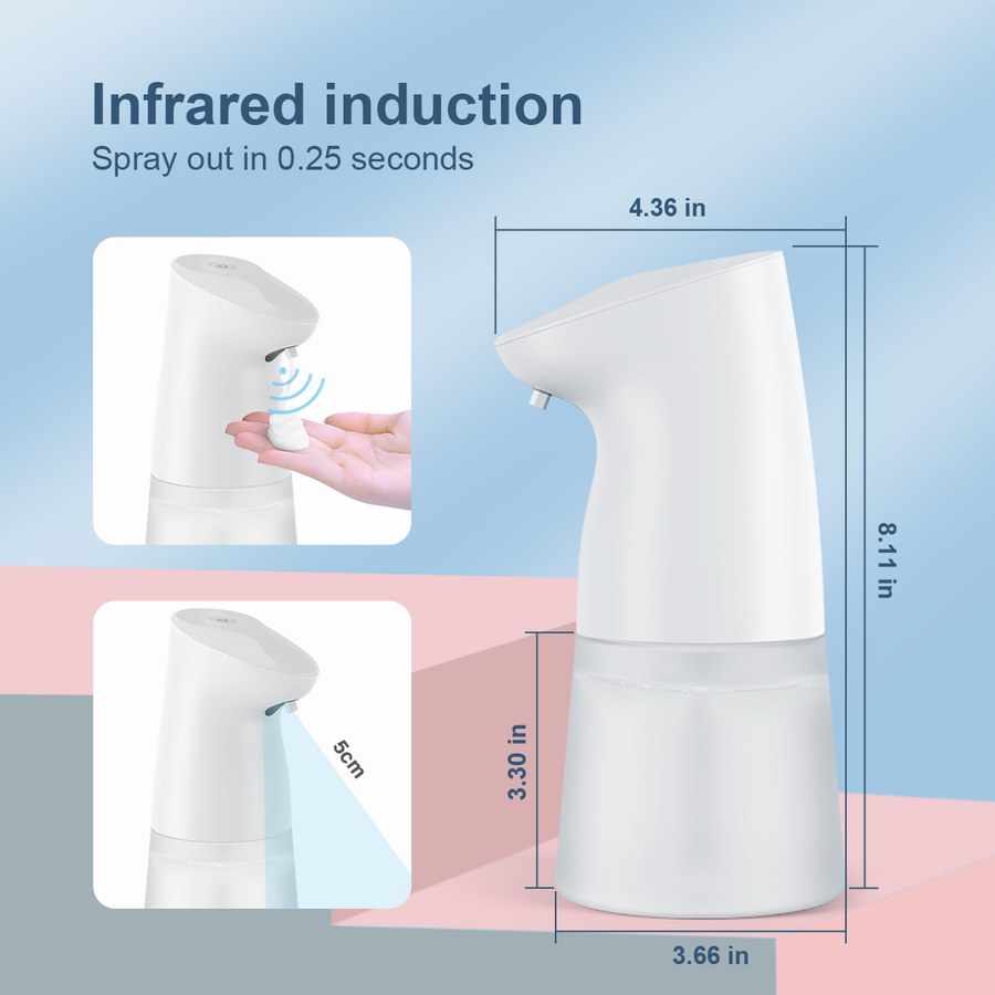 1.皂液器不工作时将自动进入待机状态,无需手动关机。